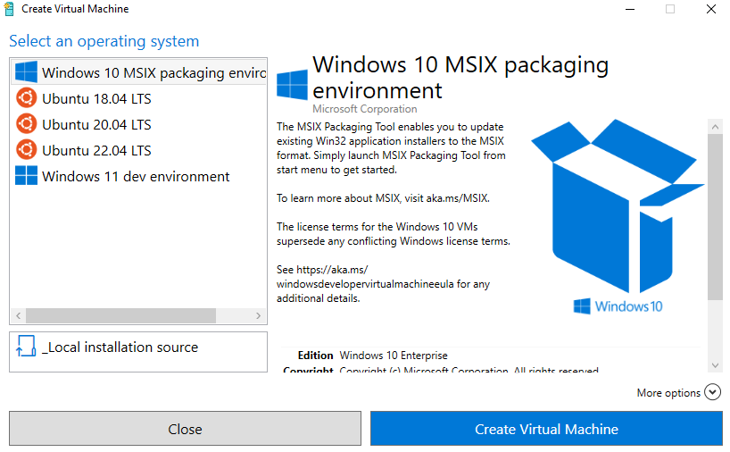 Tại đây sẽ hiện 1 số hệ điều hành có sẵn ( Có thể tải iso và chọn Local để chọn )