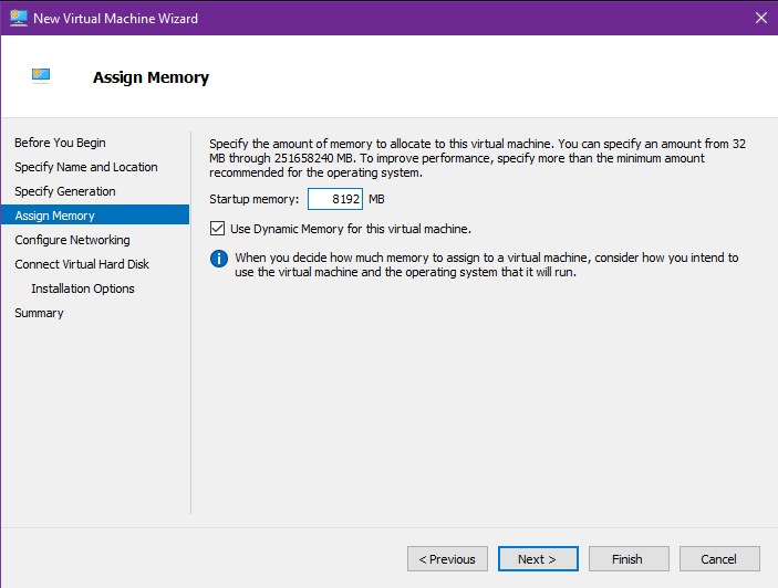 Set ram thành 8GB (hoặc cao hơn ) -> Next