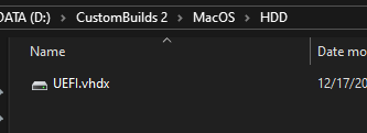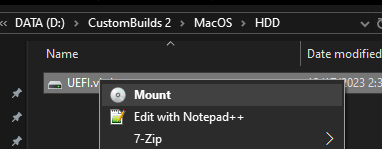 Quay lại thư mục HDD và Mount file UEFI.vhdx